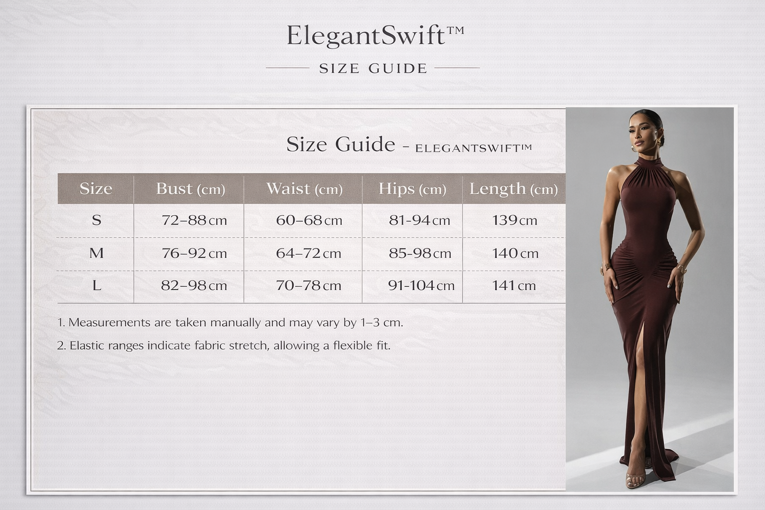 A refined halter maxi dress featuring soft ruched detailing and a fluid silhouette. Designed with a clean neckline and timeless lines, it offers an elegant presence for elevated moments — confident, understated, and modern.