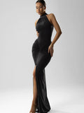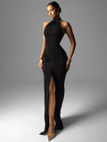 Halter Ruched Maxi Dress – Refined Silhouette